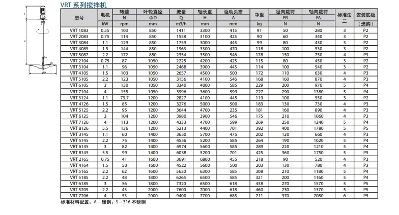 米顿罗搅拌机VRT系列的驱动部分由IEC标准电机或知名品牌齿轮电机构成, 轴和叶轮有多种材质可供选择,