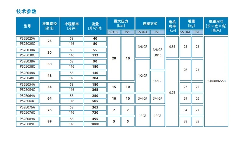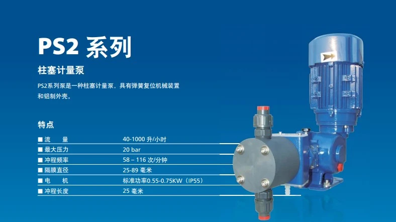 PS2系列泵是一种柱塞计量泵,具有弹簧复位机械装置和铝制外壳。